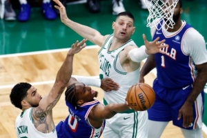 马克西和VJ破了波士顿花园,费城1比1凯尔特人——明明第一场还输了32分。