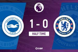 半场-布莱顿暂1-0切尔西 开场3分钟卡迪奥卢建功查洛巴门线解围