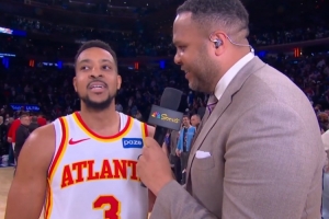 24直播网4月21日讯 NBA季后赛东部首轮G2,老鹰107-106险胜尼克斯,大比分1-1战平。赛后CJ·麦科勒姆在场边接受了媒体采访,以下为采访全文。