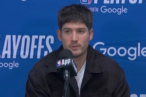 谢泼德:是的,你知道,当他们在最后阶段打出高潮,就像你说的把分差缩小到一个回合时,我们肯定想起了G3发生的事情,我们不想让那种情况再次重演。所以我们就是要团结一致,执行正确的战术,跑出合适的进攻套路,获得好的投篮机会,这就是我们能够做到的。