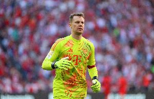 24直播网5月1日讯 《德国天空体育》消息,40岁的老将诺伊尔倾向于续约,但预计需要降低薪资。