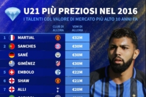 德转列10年前U21球员身价榜:马夏尔居首,阿里、登贝莱在列
