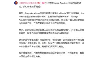 青训网站不当用图,巴萨官方回复:是第三方运营 已下架&复盘整改
